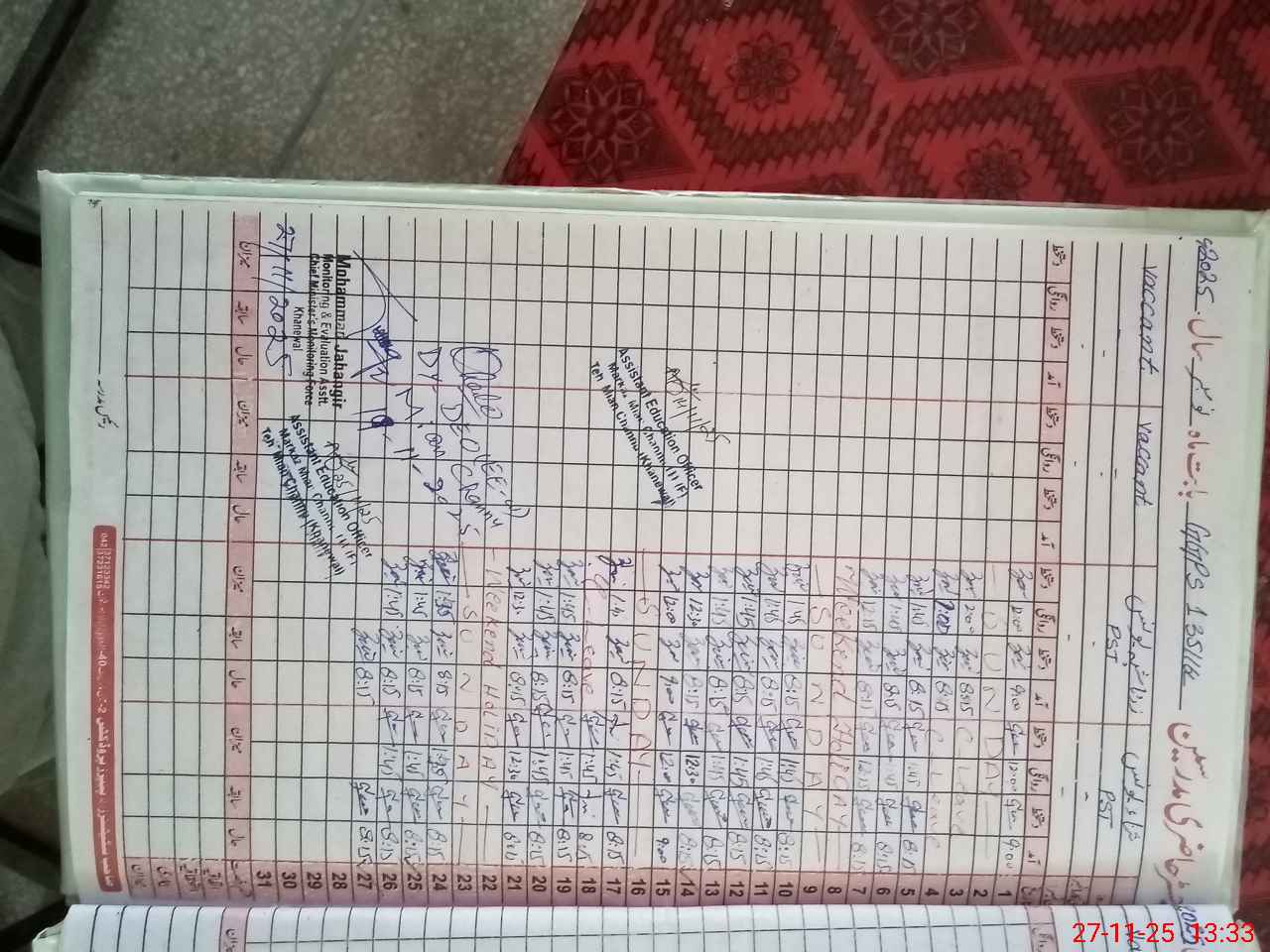 | Monitoring Date: 27-11-2025 | Start Time: 27-11-2025 12:55 PM | End Time: 27-11-2025 01:37 PM | Name of MEA: Mu**** Ja**** | |