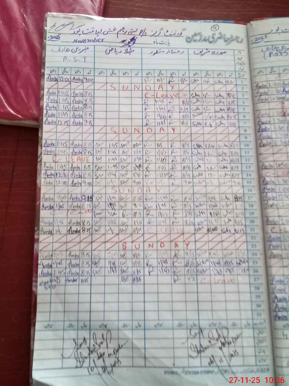 | CNIC | Full Name | Designation | R/C | Absence During Last Calender Month |