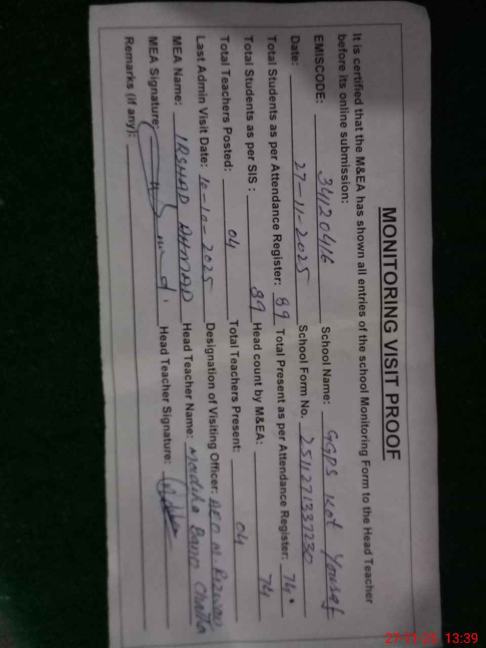 | EMIS Code: 34120416 | Name of School: GGPS KOT YOUSAF | |||