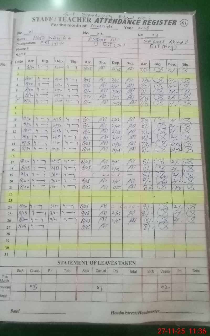 | Name: HA**** NA**** Designation: (School Headmaster's/Headmistress's) SST (GENERAL) Phone/Cell Number: 03**** |