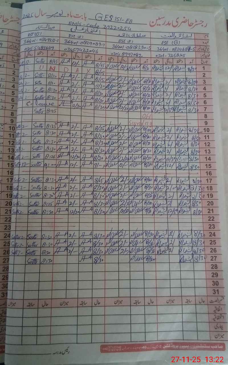 | Name: BA**** AH**** UL**** Designation: (School Headmaster's/Headmistress's) EST(GEN) Phone/Cell Number: 03**** |