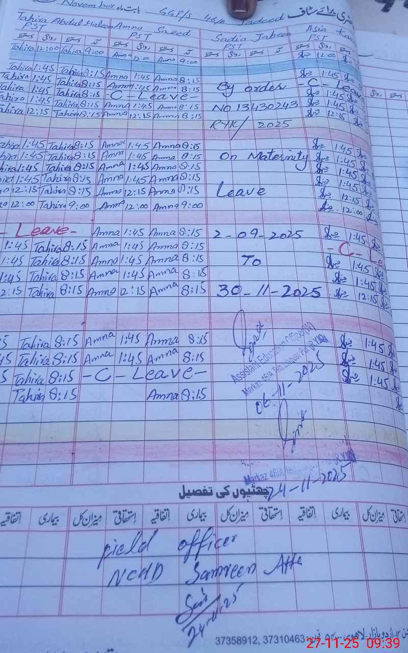 | 31**** | Sa**** Ja**** | ESE Science/Maths | Regular | 0 | 0 | 0 | 0 | 0 | 0 | 0 | 0 | 0 | Maternity |
