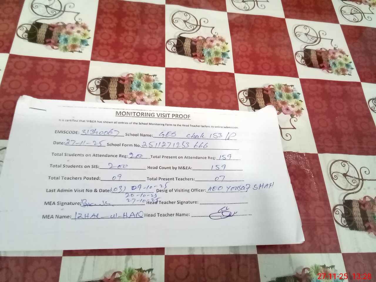| EMIS Code: 31340067 | Name of School: GES CHAK NO 153/P | |||