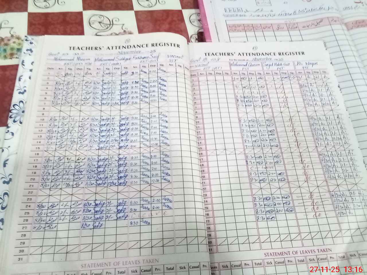 | Leave | Duty | Absent | Maternity | Medical | Ex- Pak |