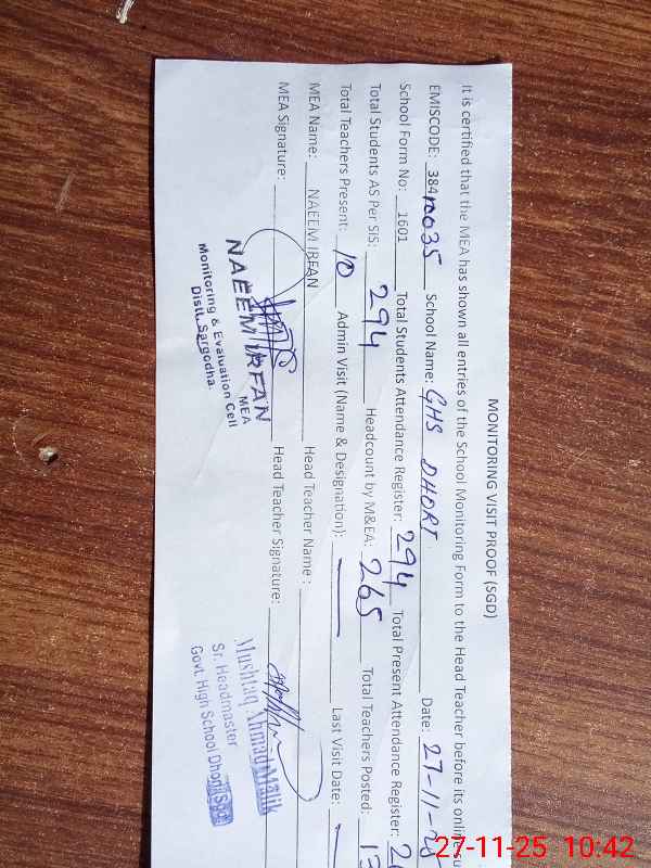 | EMIS Code: 38410035 | Name of School: GHS DHORI | |||