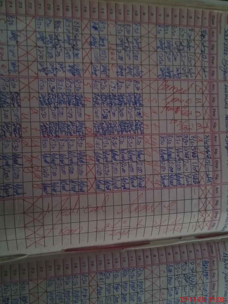 | Leave | Duty | Absent | Maternity | Medical | Ex- Pak |