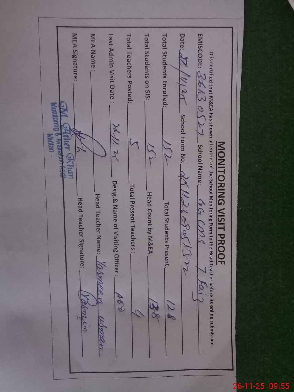 | EMIS Code: 36130527 | Name of School: GGCMS 7-FAIZ | |||