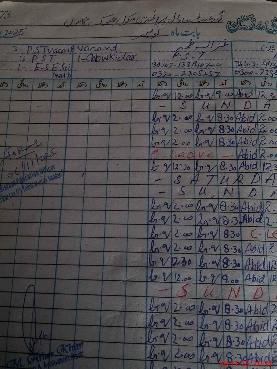 | Name: Ab**** Hu**** Designation: (School Headmaster's/Headmistress's) Head Master Phone/Cell Number: 03**** |