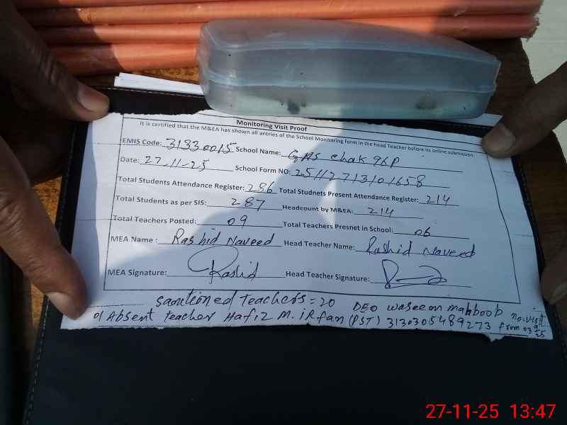| Attendance Register | Head Teacher | MEA with School | Visit Proof |