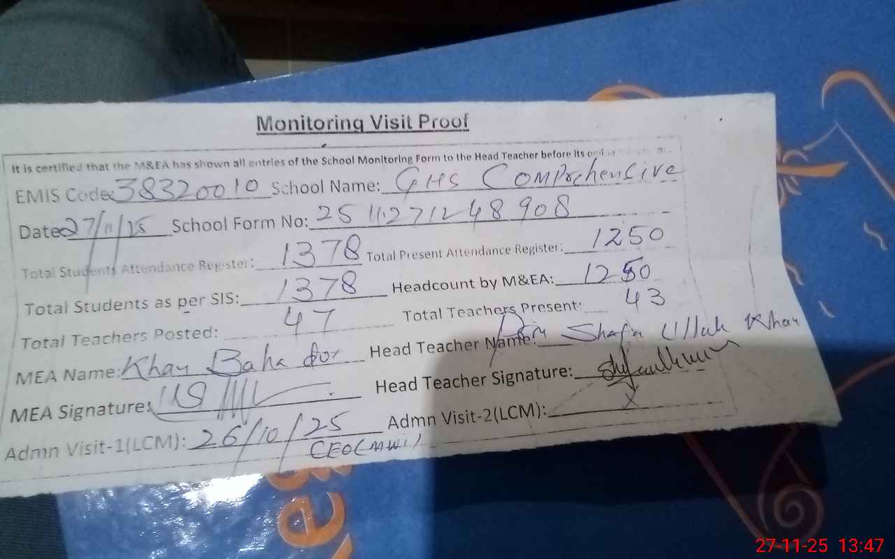 | EMIS Code: 38320010 | Name of School: GHS COMPREHENSIVE MIANWALI | |||