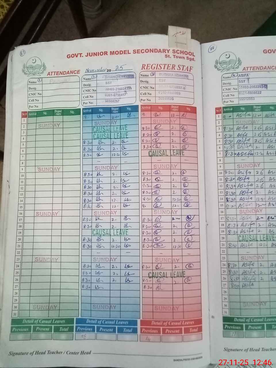 | CNIC | Full Name | Designation | R/C | Absence During Last Calender Month |