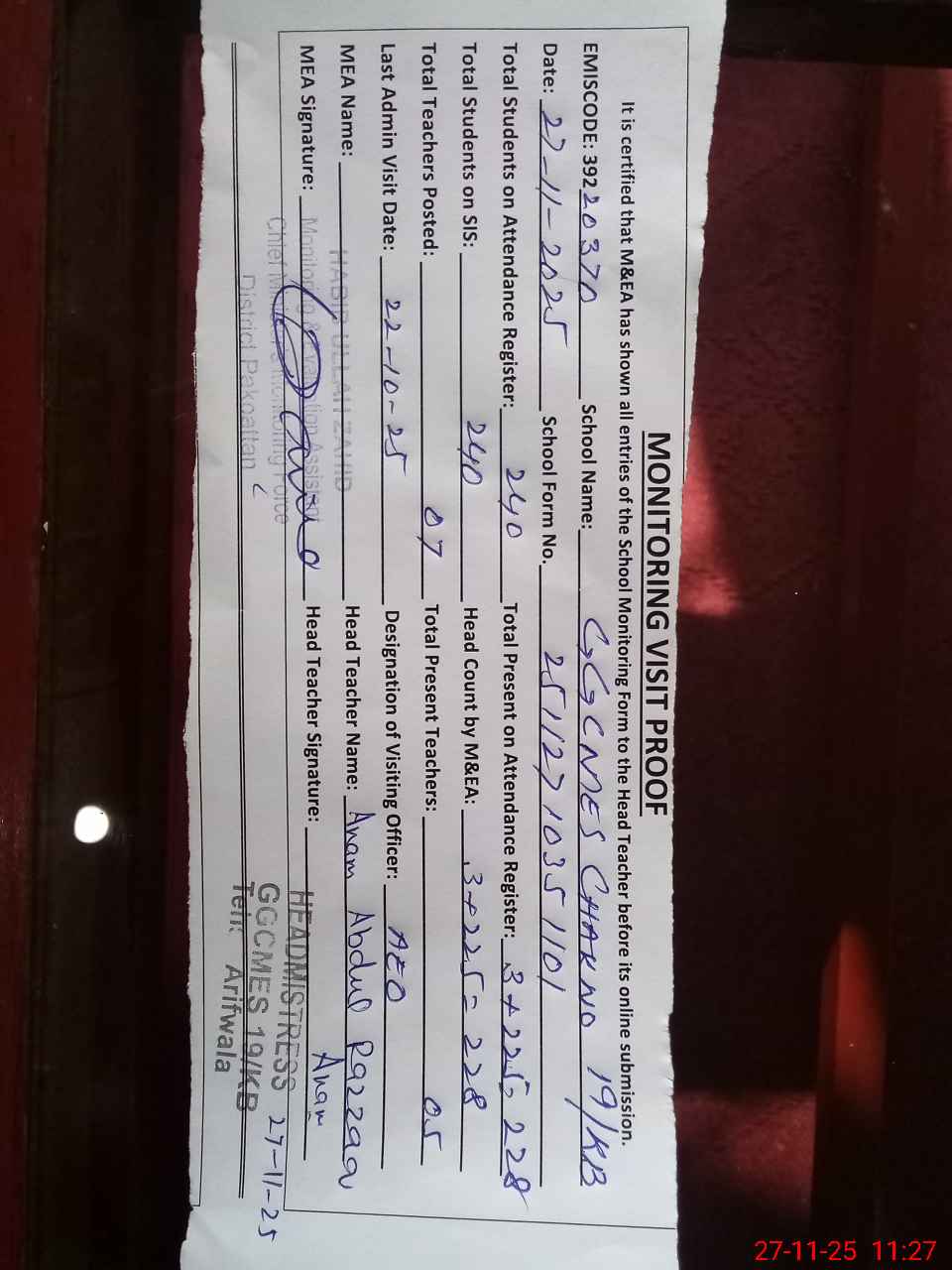 | EMIS Code: 39220370 | Name of School: GGCMES CHAK NO 19 KB | |||