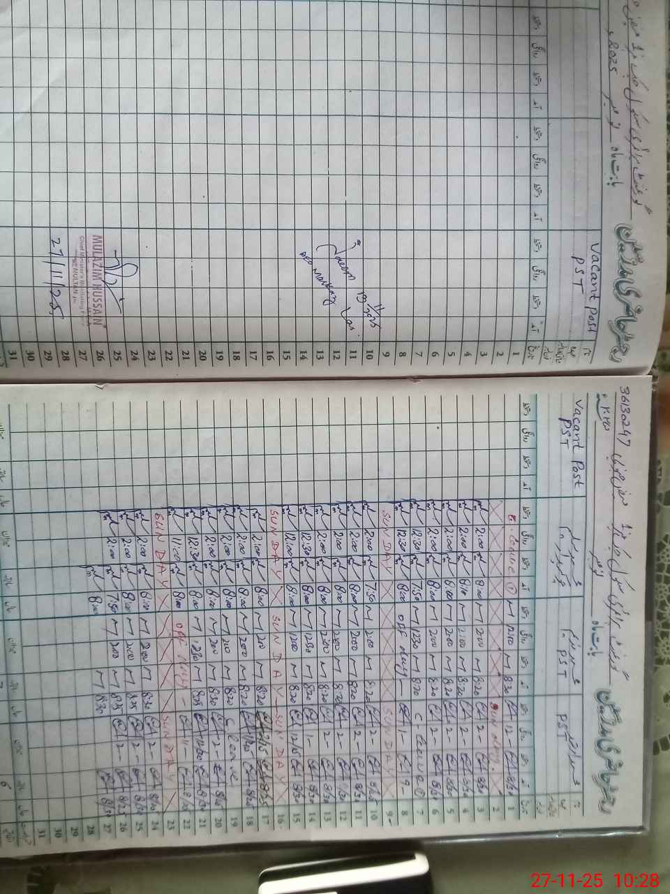 | CNIC | Full Name | Designation | R/C | Absence During Last Calender Month |