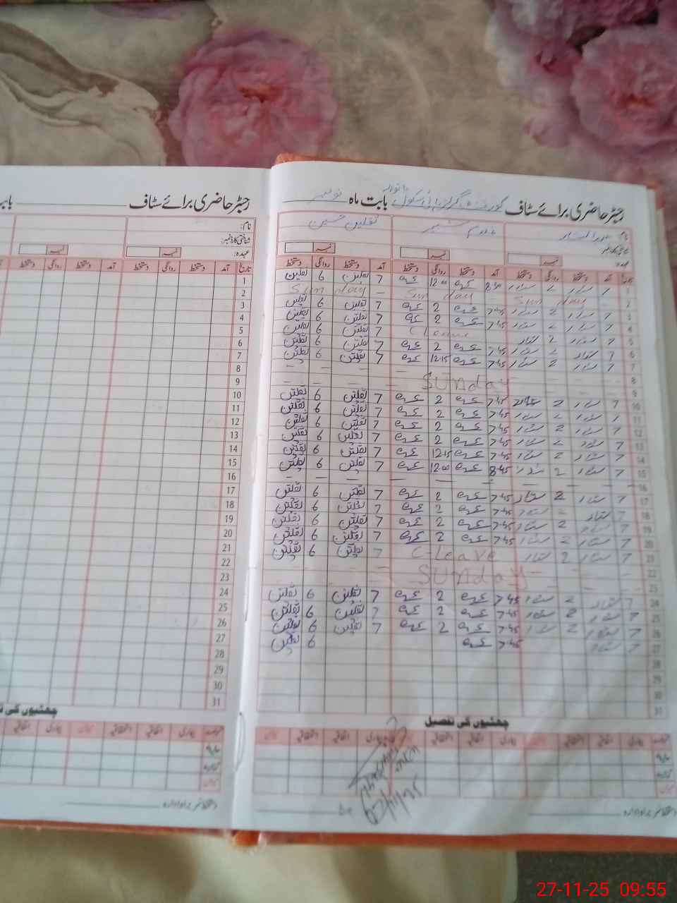 | CNIC | Full Name | Designation | R/C | Absence During Last Calender Month |