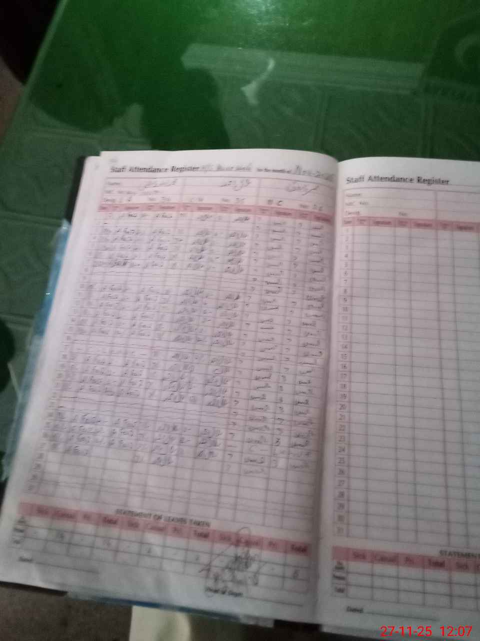 | CNIC | Full Name | Designation | R/C | Absence During Last Calender Month |