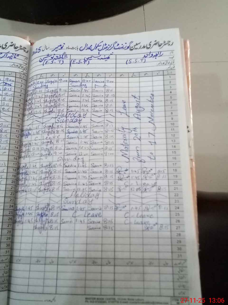 | 36**** | Na**** Za**** | PST | Regular | 0 | 0 | 0 | 0 | 0 | 0 | 0 | 0 | 0 | Casual |