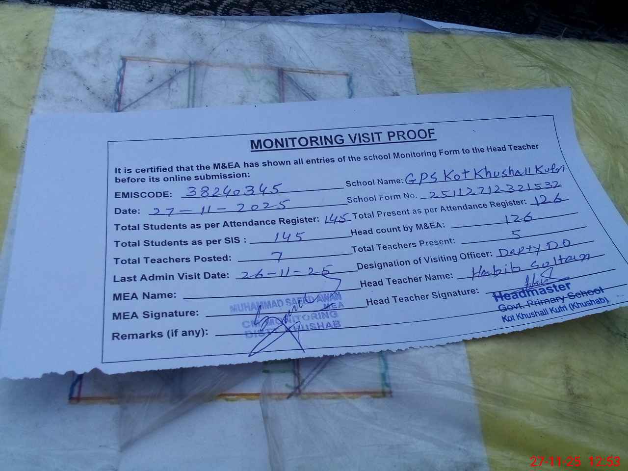 | EMIS Code: 38240345 | Name of School: GPS KOT KHUSHAL | |||