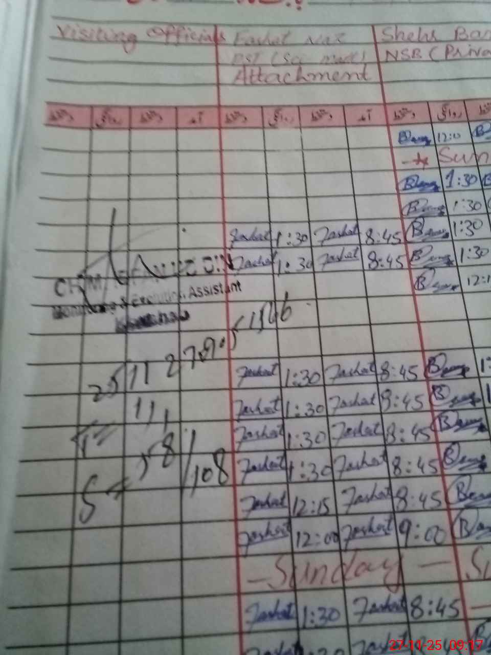| CNIC | Full Name | Designation | R/C | Absence During Last Calender Month |
