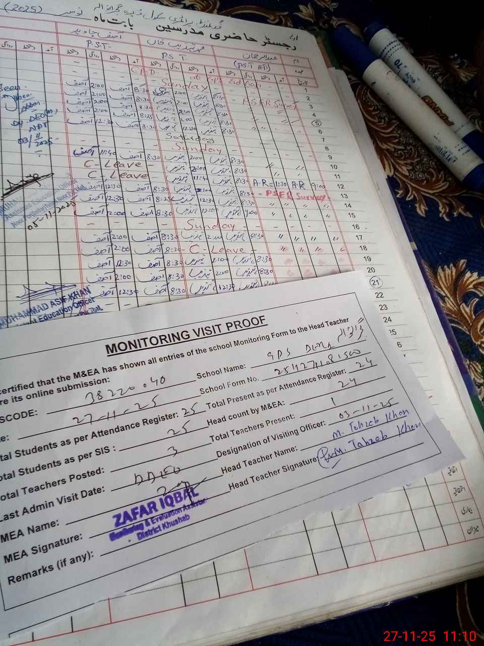 | Remarks (Use Separate Page if Required): Last visit DDEO 03 November 2025 Total on register 25 Total on sis 25 | |||||