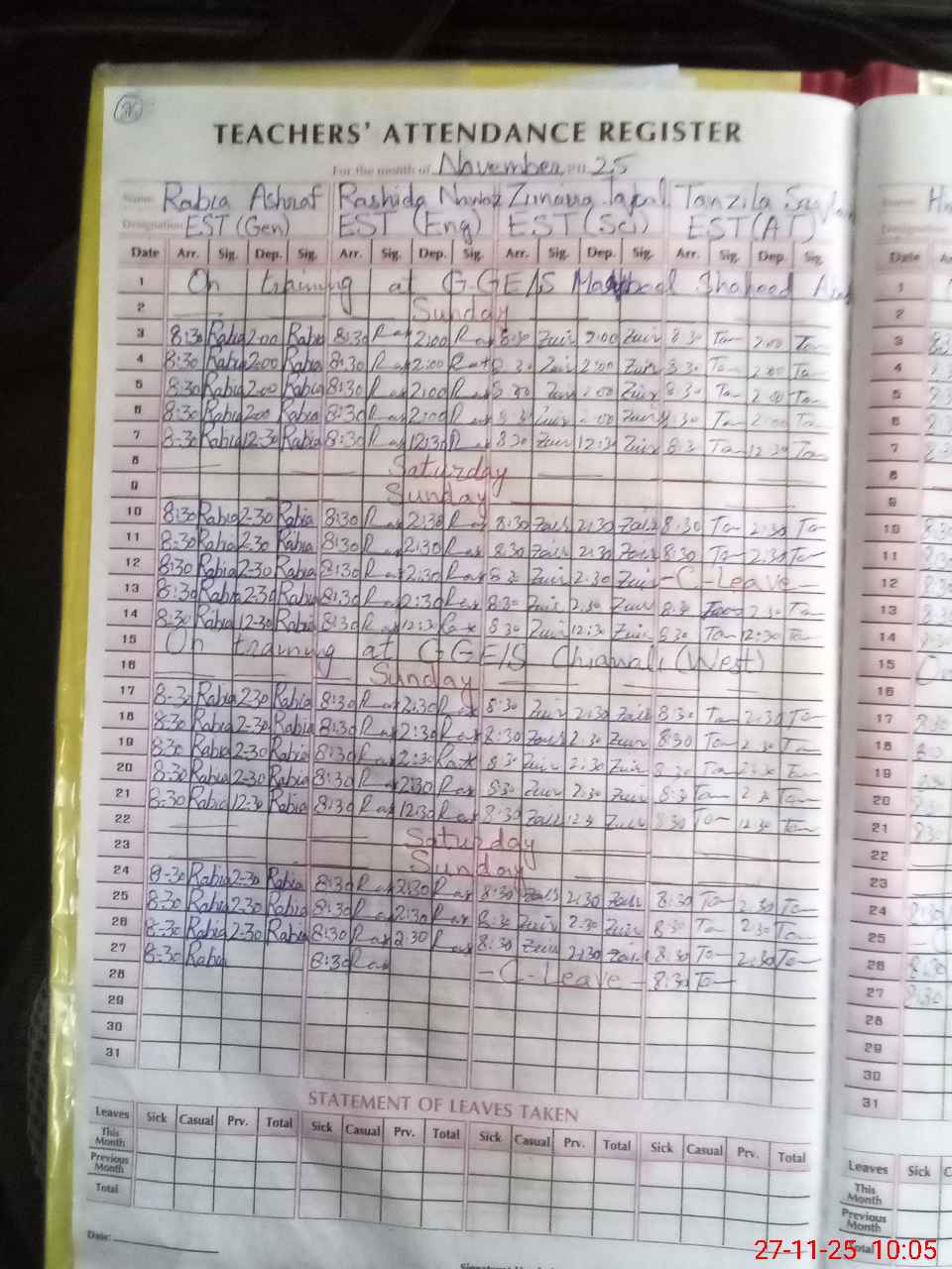 | Leave | Duty | Absent | Maternity | Medical | Ex- Pak |