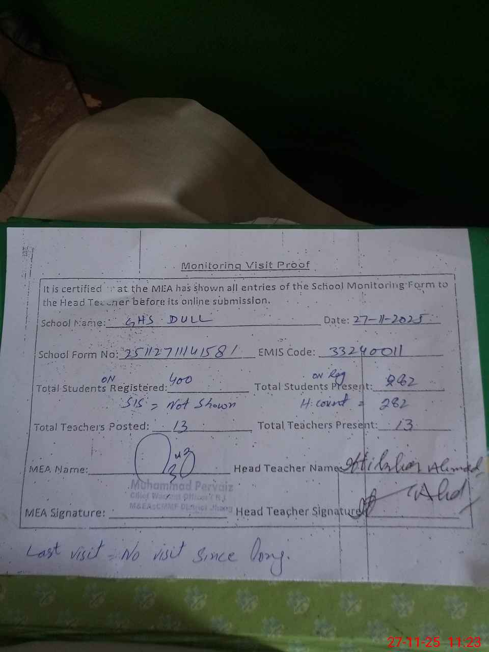| EMIS Code: 33240011 | Name of School: GHS DULL | |||