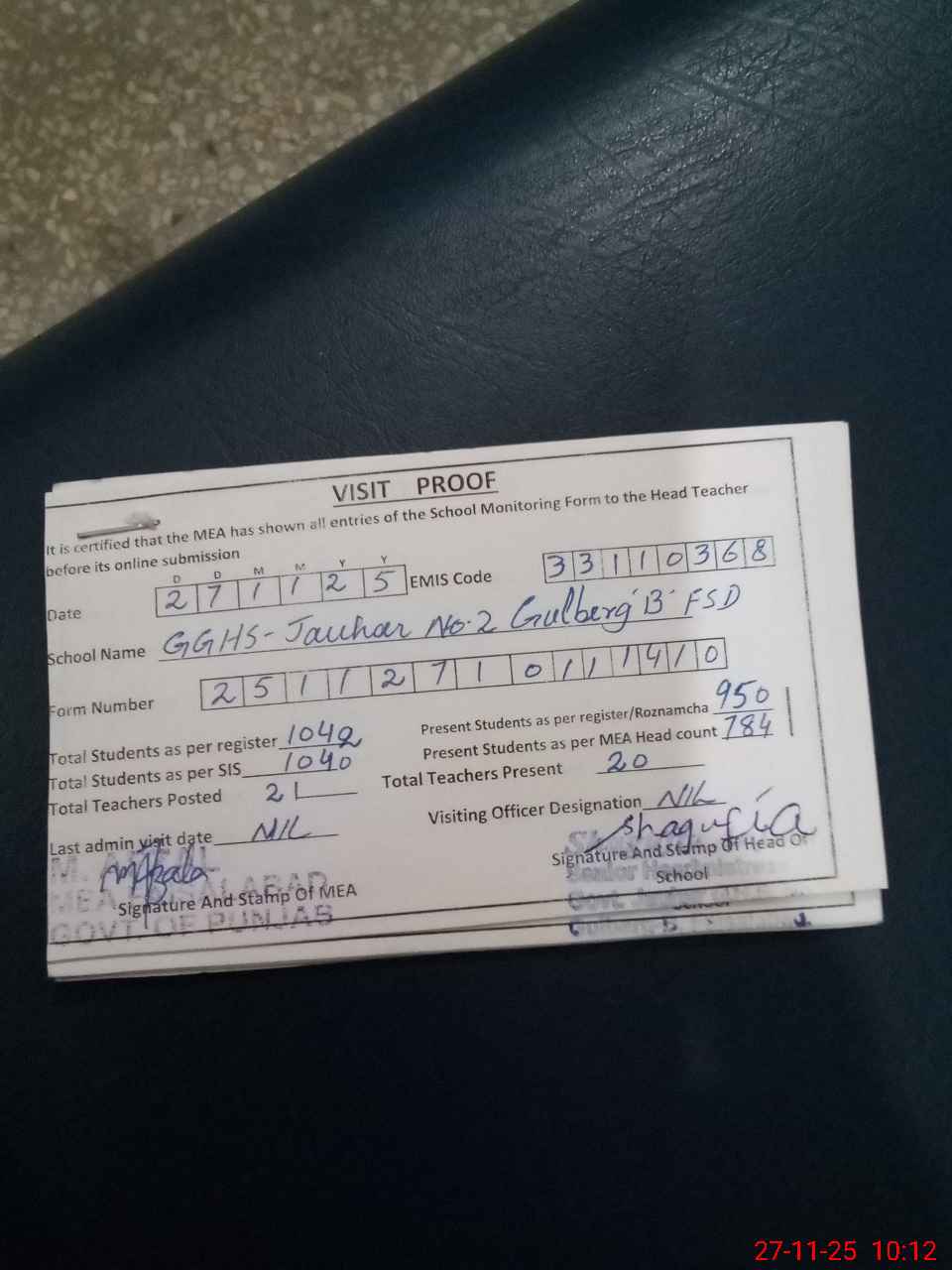 | EMIS Code: 33110368 | Name of School: GGHS JAUHAR NO 2 GULBERG B FSD | |||