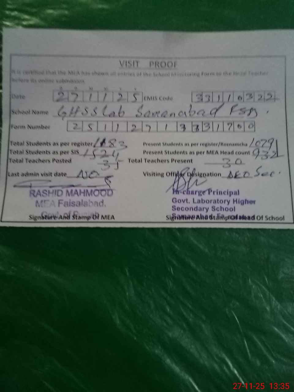 | Certified that this School was Inspected by the Undersigned MEA/DMO Today and the Information Stated Above is as Per Record. | |||||