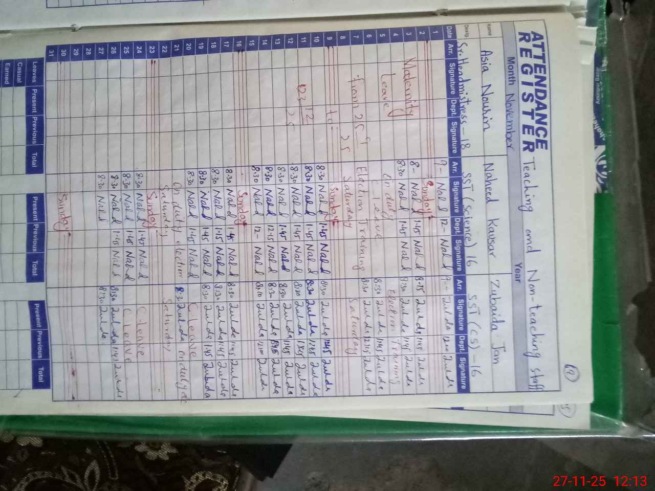 | 33**** | Ah**** Ra**** | Regular | 0 | 0 | 31 | 0 | 0 | 0 | 0 | 0 | 0 | Absent (Un-Authorized) | |