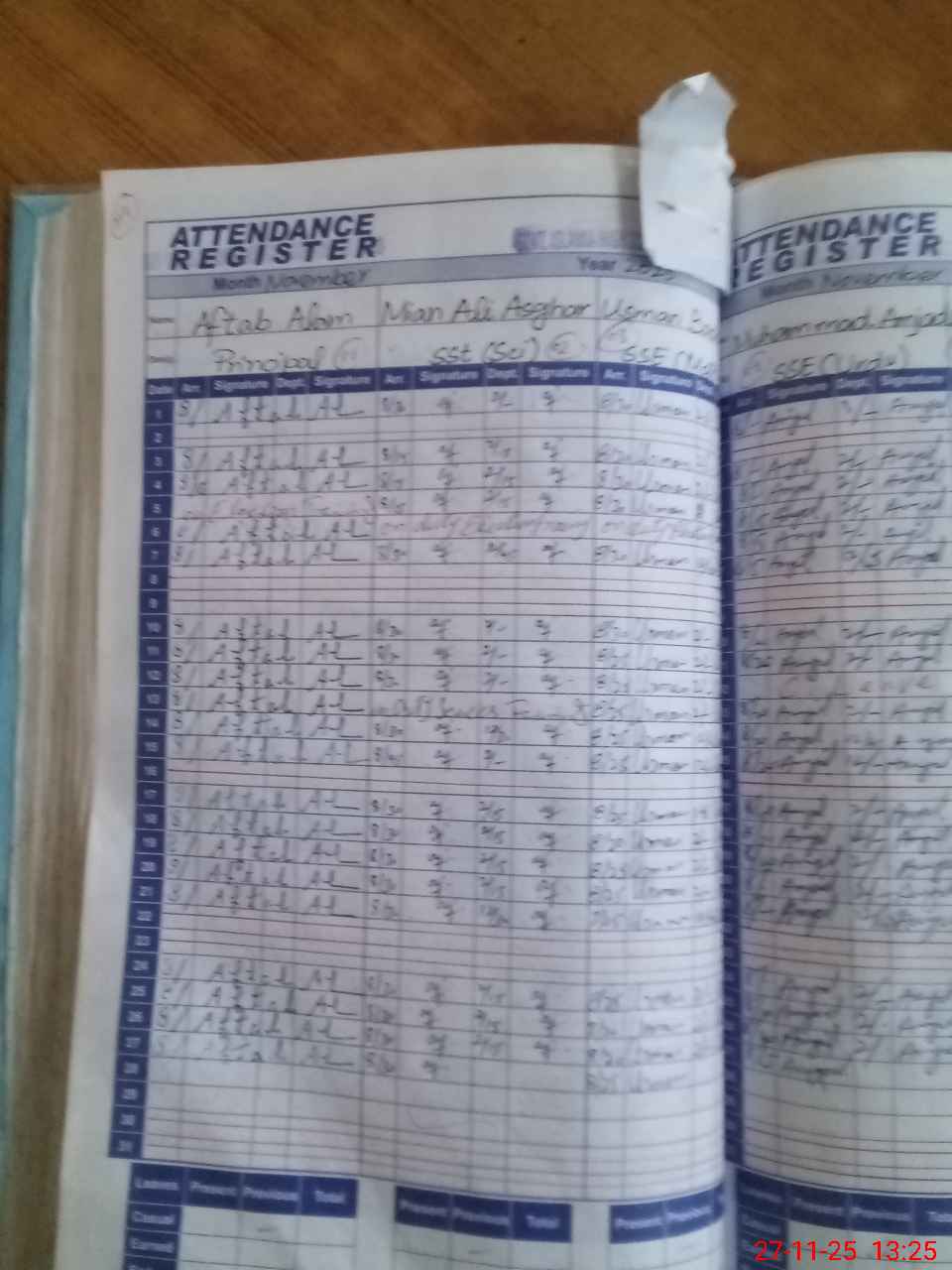 | CNIC | Full Name | Designation | R/C | Absence During Last Calender Month |