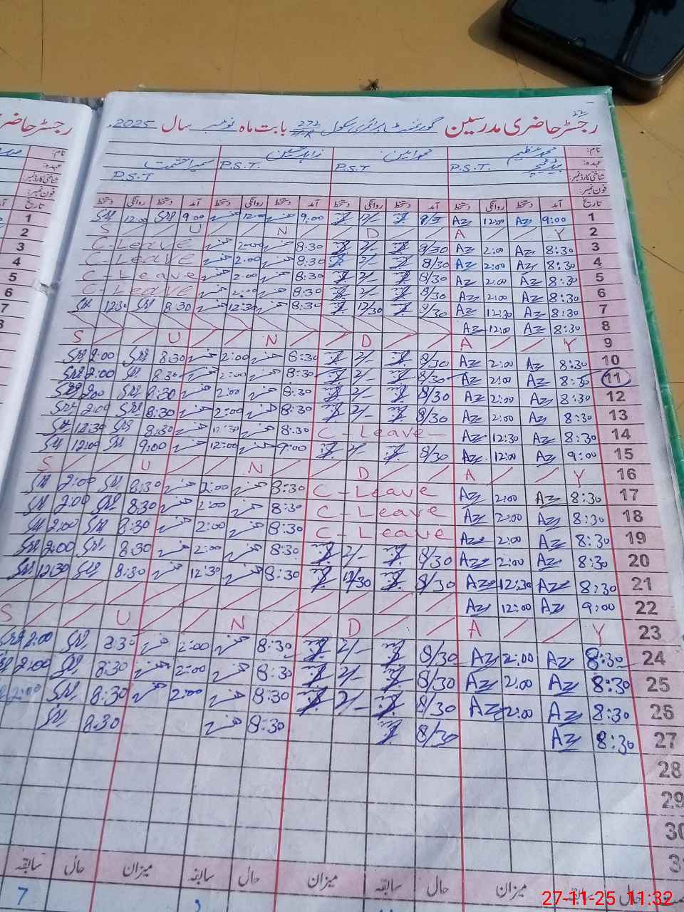 | CNIC | Full Name | Designation | R/C | Absence During Last Calender Month |