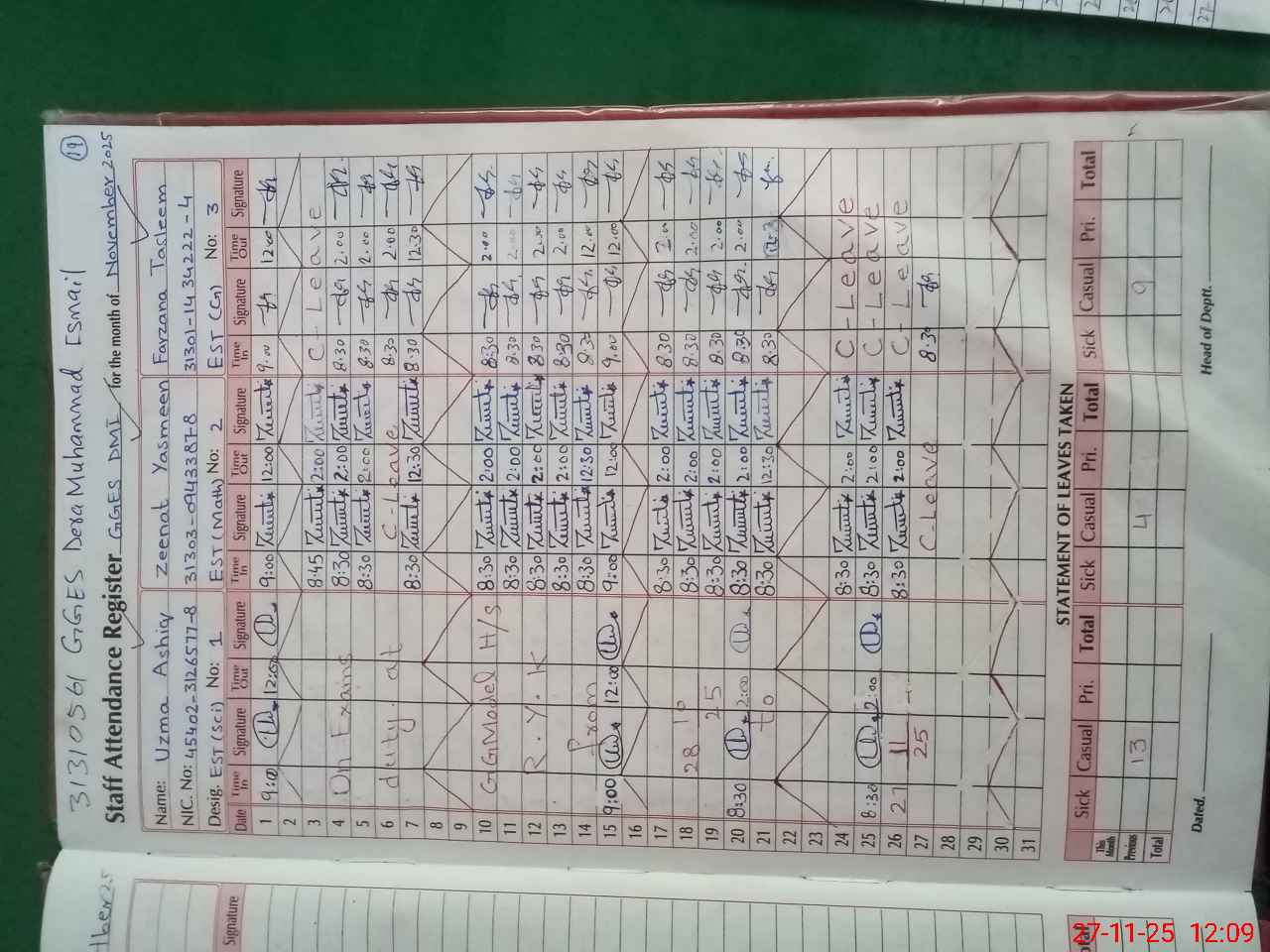 | 45**** | Uz**** As**** | Regular | 3 | 4 | 0 | 0 | 0 | 0 | 0 | 0 | 3 | Exam Duty | |