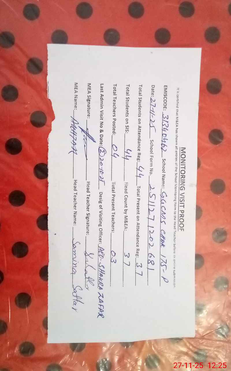 | EMIS Code: 31340462 | Name of School: GGCMS 175/P | |||