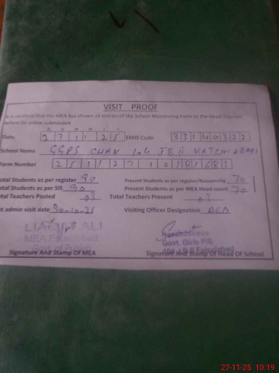 | EMIS Code: 33140322 | Name of School: GGPS CHAK 104 JB II KATCH ABADI | |||