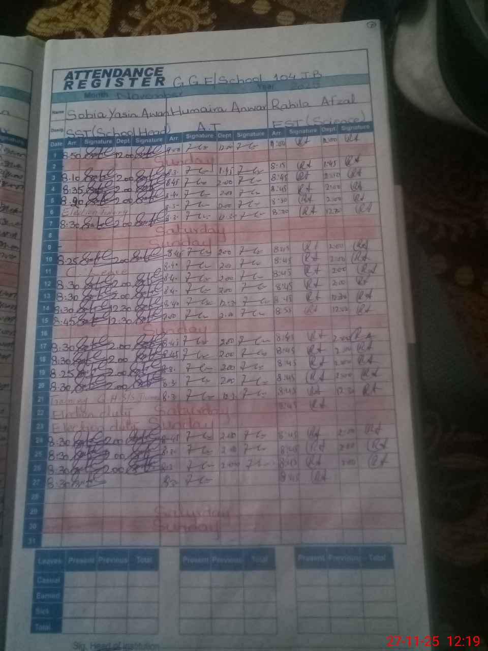 | Leave | Duty | Absent | Maternity | Medical | Ex- Pak |