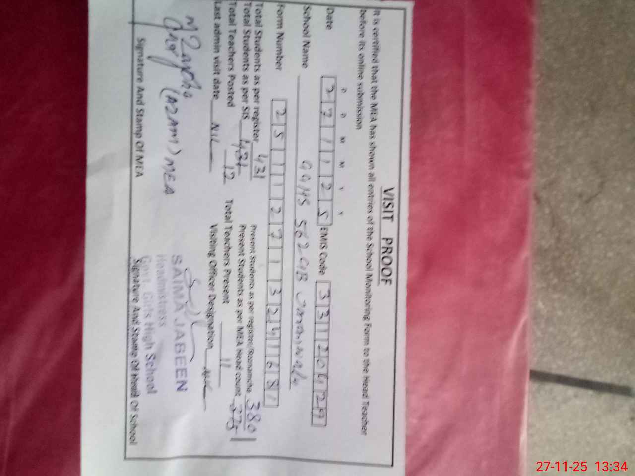 | EMIS Code: 33120429 | Name of School: GGHS CHAK 562 GB LUNDIANWALA | |||