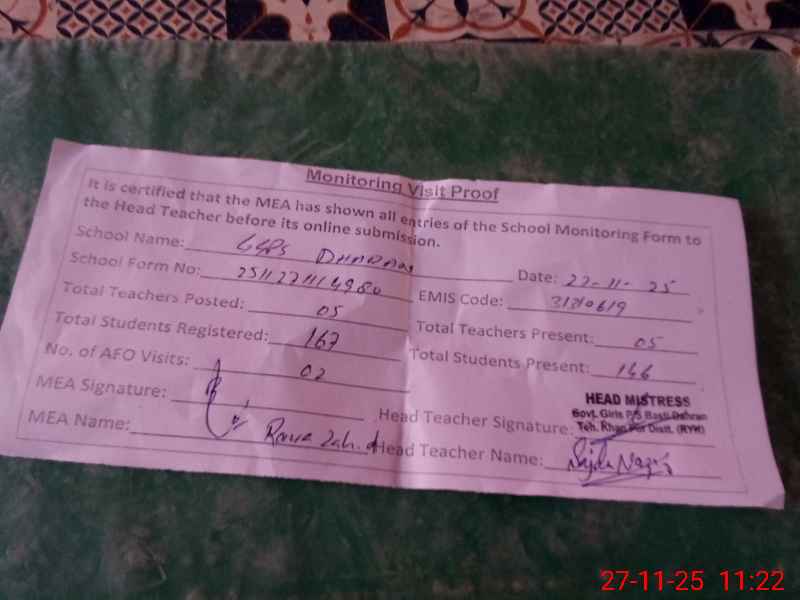 | EMIS Code: 31310619 | Name of School: GGPS BASTI DHARAN | |||