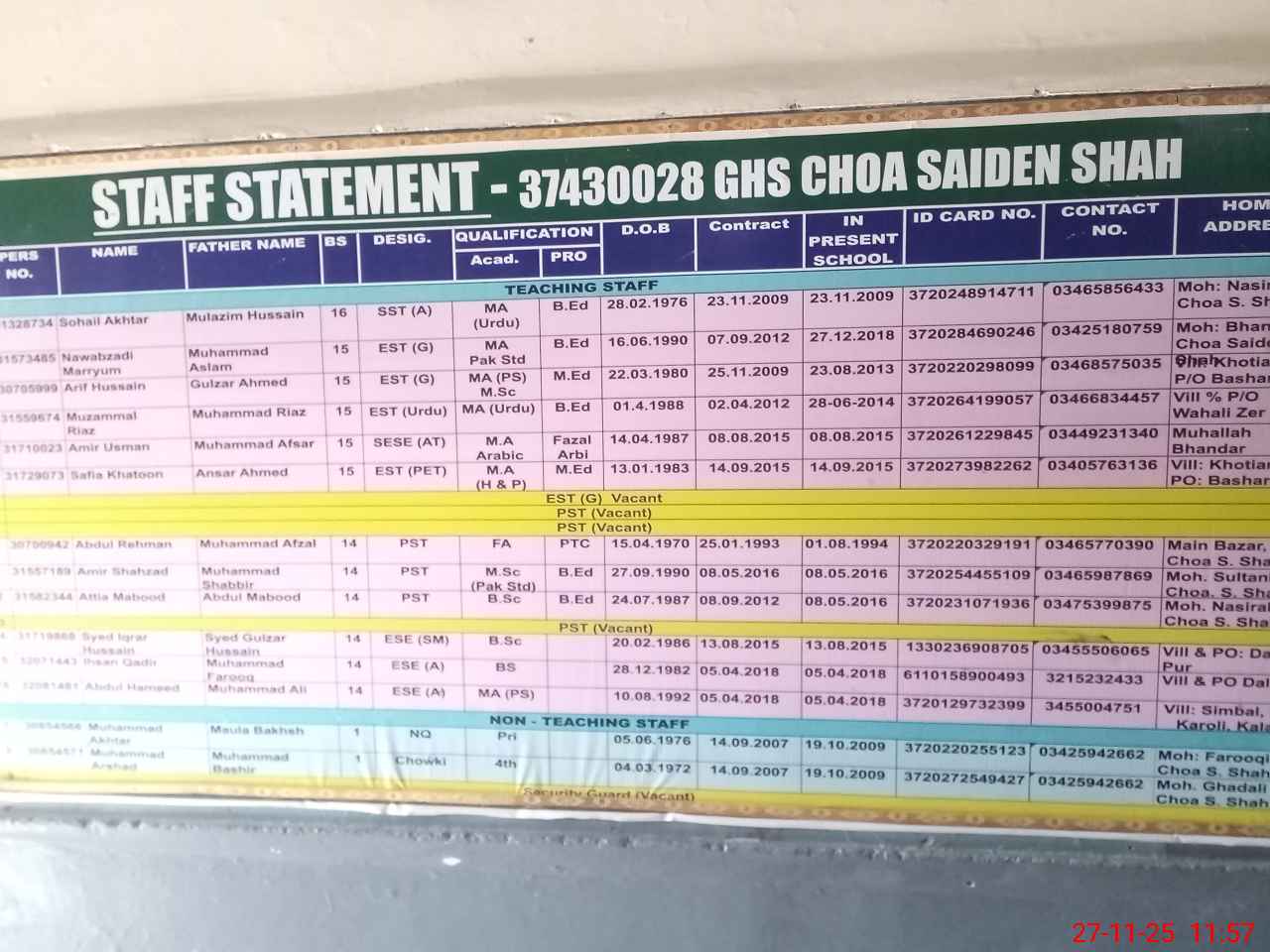 | EMIS Code: 37430028 | Name of School: GHS CHOA SAIDAN SHAH | |||