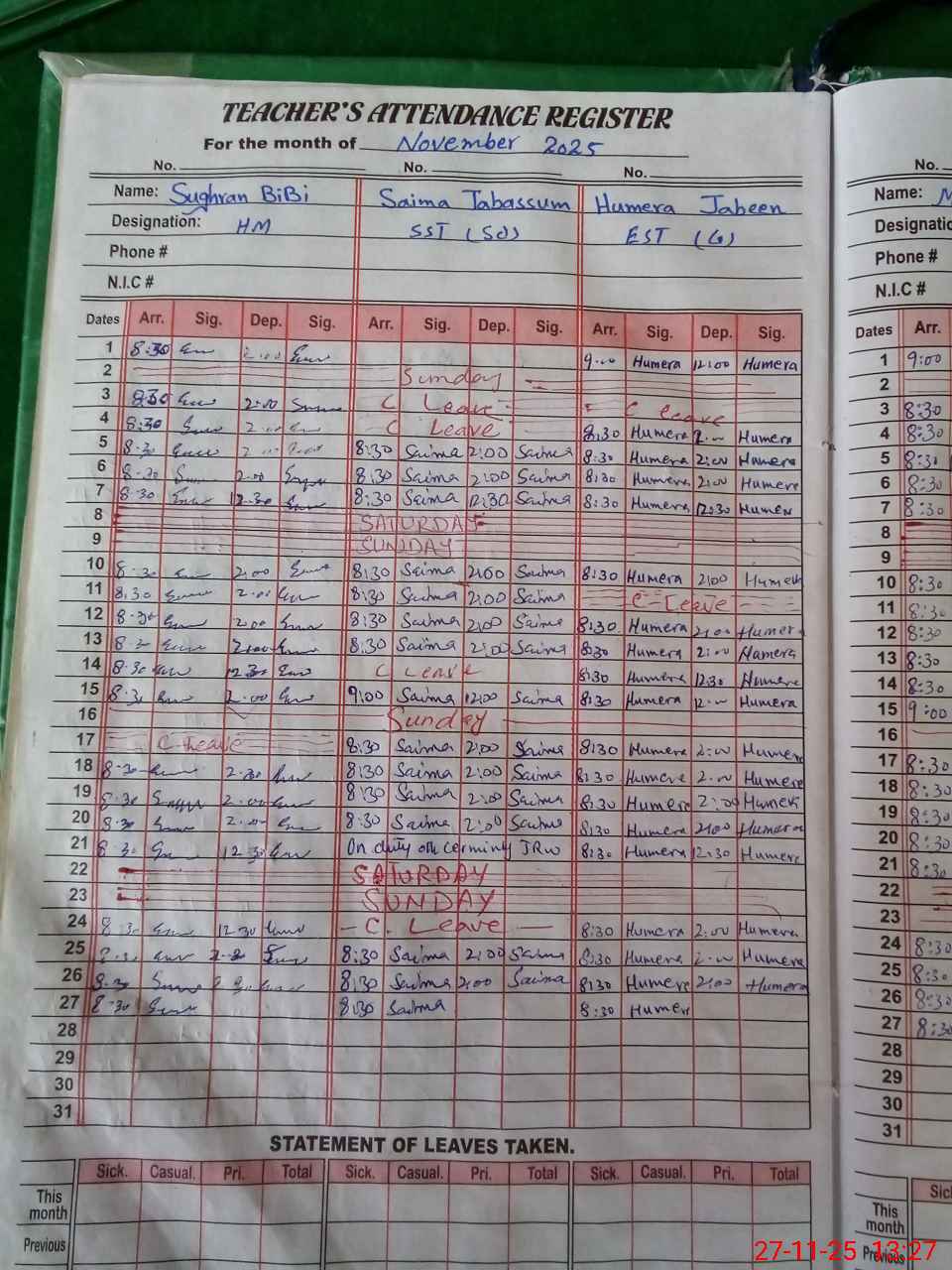 | 33**** | Uz**** Sa**** | EST | Regular | 0 | 0 | 0 | 0 | 0 | 0 | 0 | 0 | 0 | Casual |