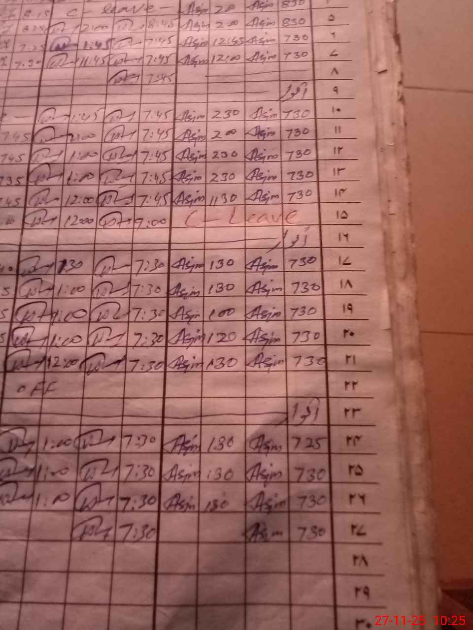 | 37**** | As**** Me**** | EST | Regular | 0 | 0 | 0 | 0 | 0 | 0 | 0 | 0 | 0 | Exam Duty |