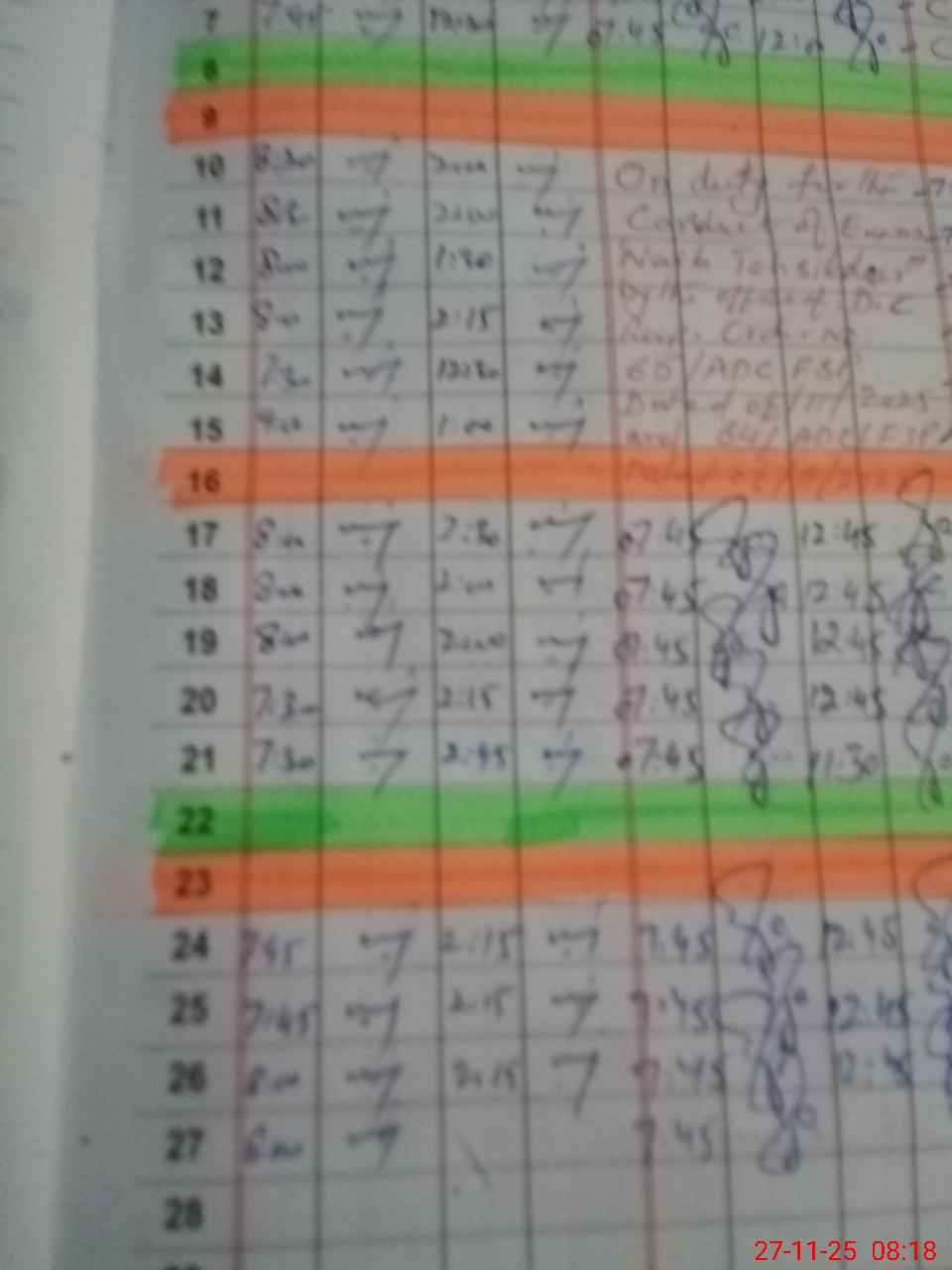 | CNIC | Full Name | Designation | R/C | Absence During Last Calender Month |
