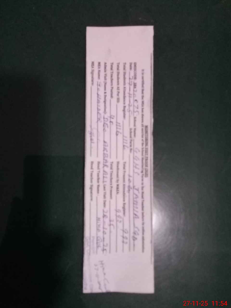 | Monitoring Date: 27-11-2025 | Start Time: 27-11-2025 10:01 AM | End Time: 27-11-2025 11:55 AM | Name of MEA: GH**** HA**** | |