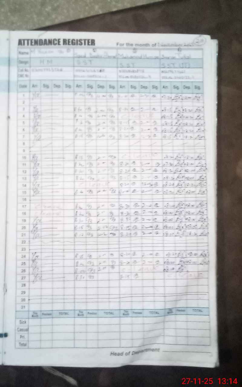 | 33**** | Mu**** Ra**** | EST | Regular | 0 | 0 | 0 | 0 | 0 | 0 | 0 | 0 | 0 | Absent (Un-Authorized) |