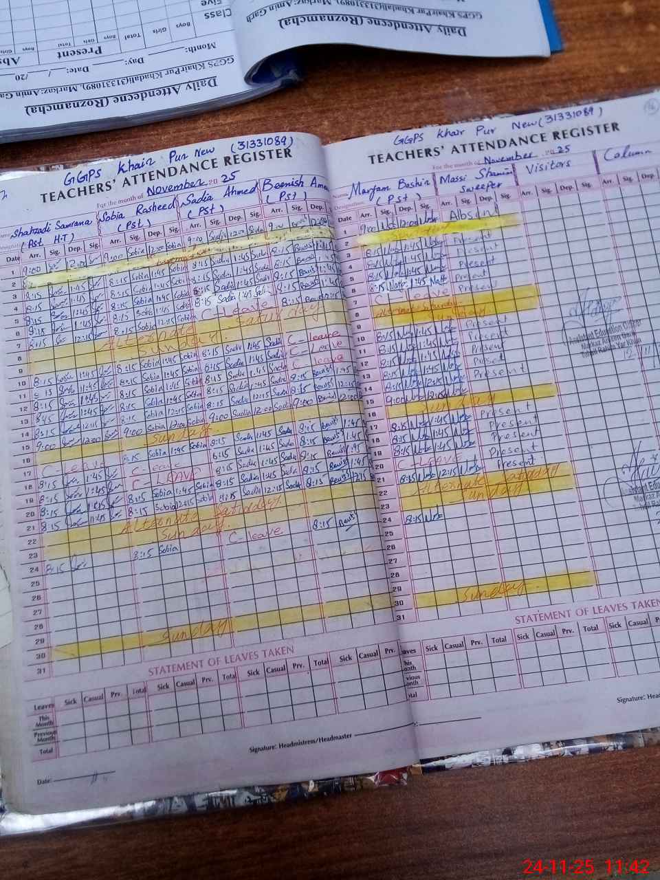 | CNIC | Full Name | Designation | R/C | Absence During Last Calender Month |