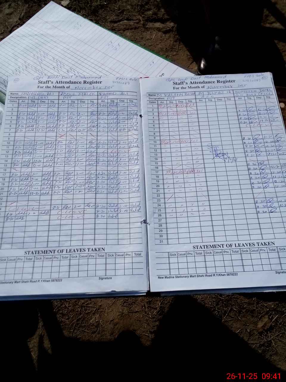 | CNIC | Full Name | Designation | R/C | Absence During Last Calender Month |