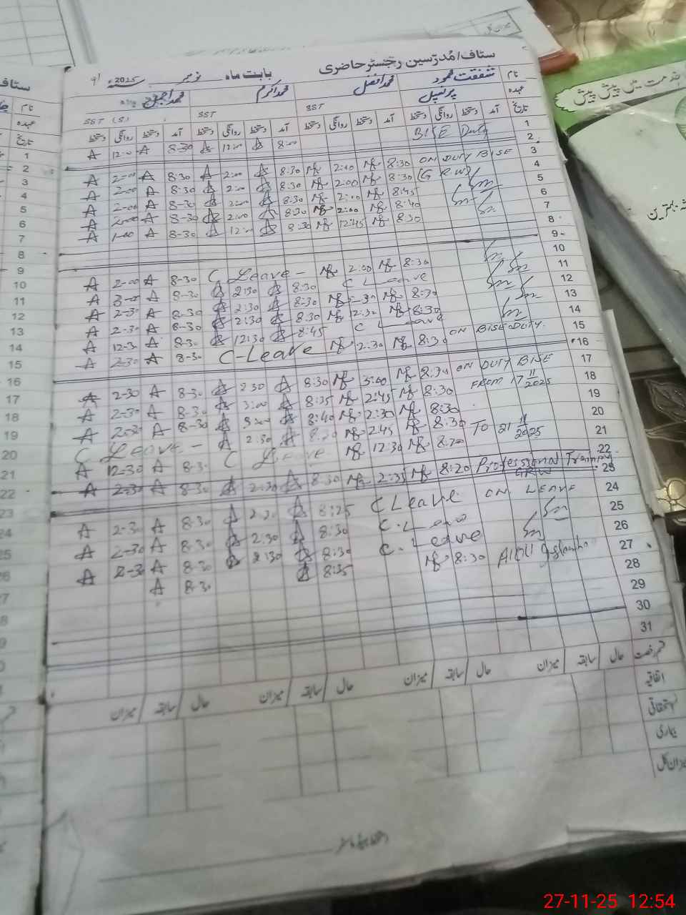| CNIC | Full Name | Designation | R/C | Absence During Last Calender Month |