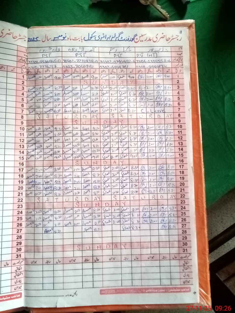 | Name: Sh**** No**** Designation: (School Headmaster's/Headmistress's) PST Phone/Cell Number: 03**** |