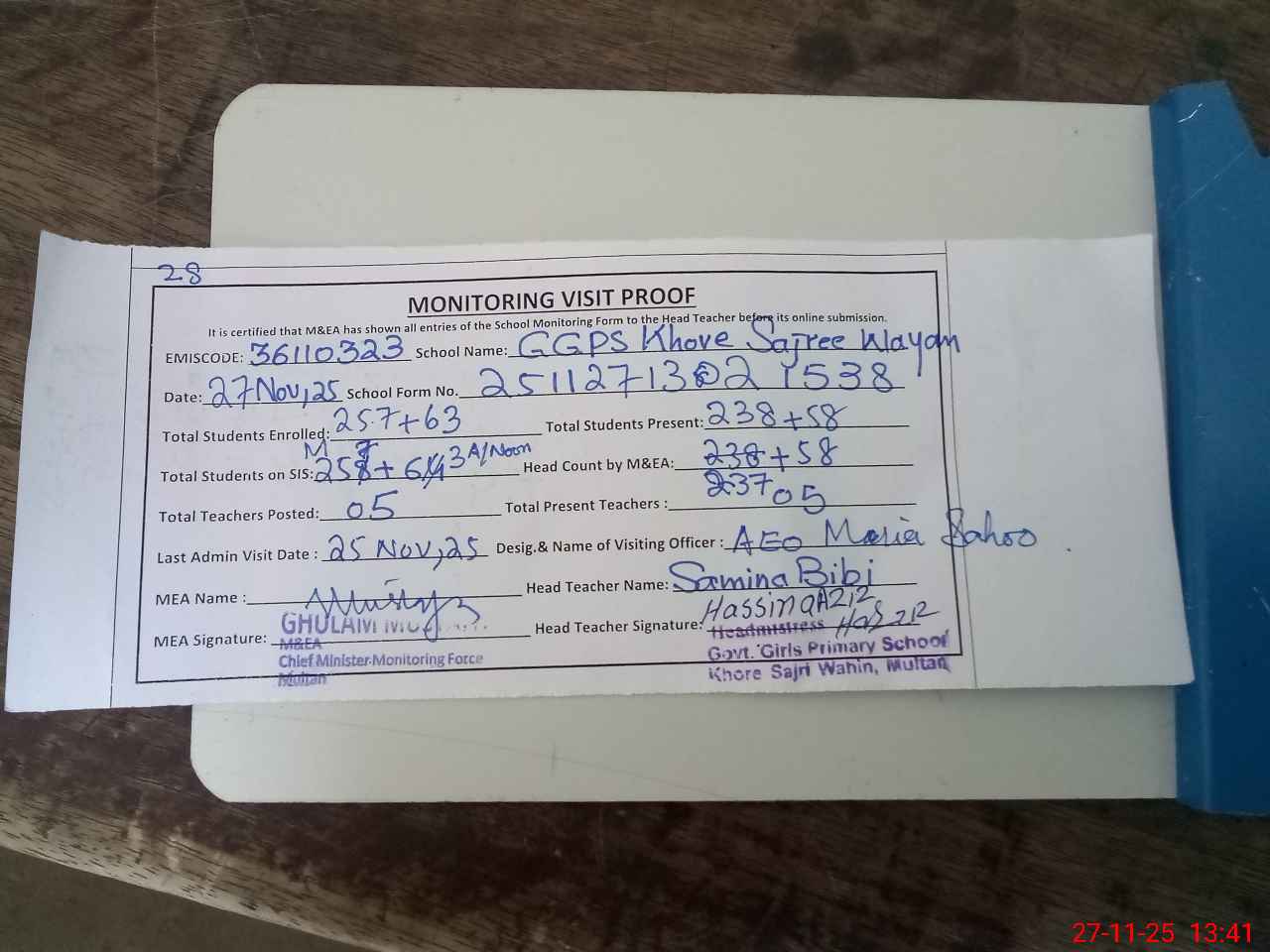 | EMIS Code: 36110323 | Name of School: GGPS KHOR SAJREE WAYAN | |||