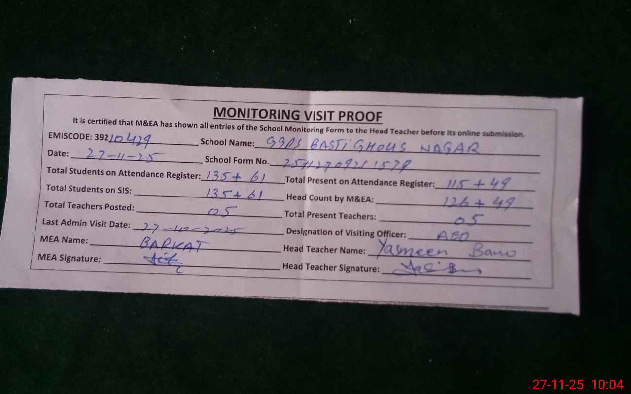 | EMIS Code: 39210429 | Name of School: GGPS BASTI GHOUS NAGAR | |||