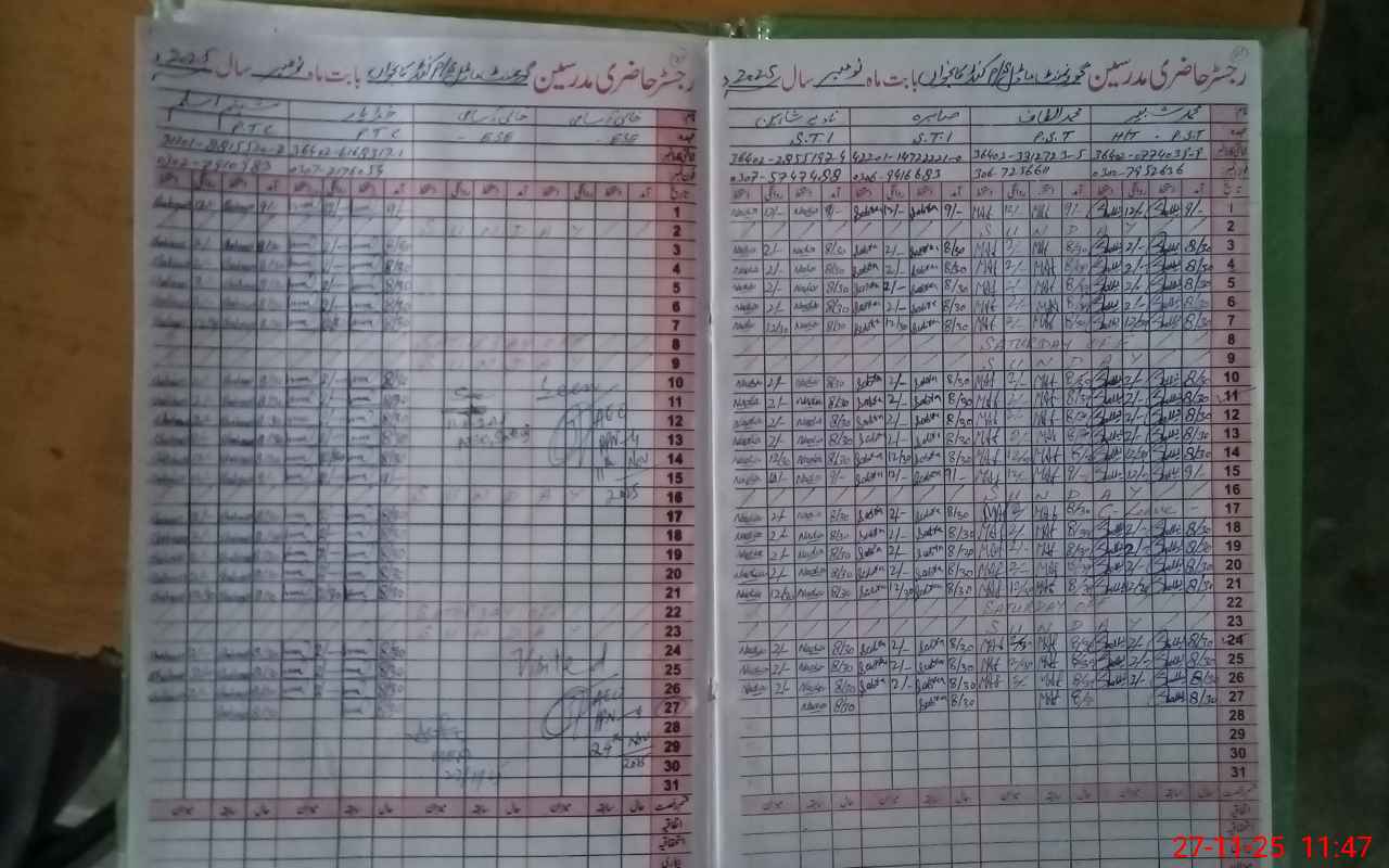 | CNIC | Full Name | Designation | R/C | Absence During Last Calender Month |