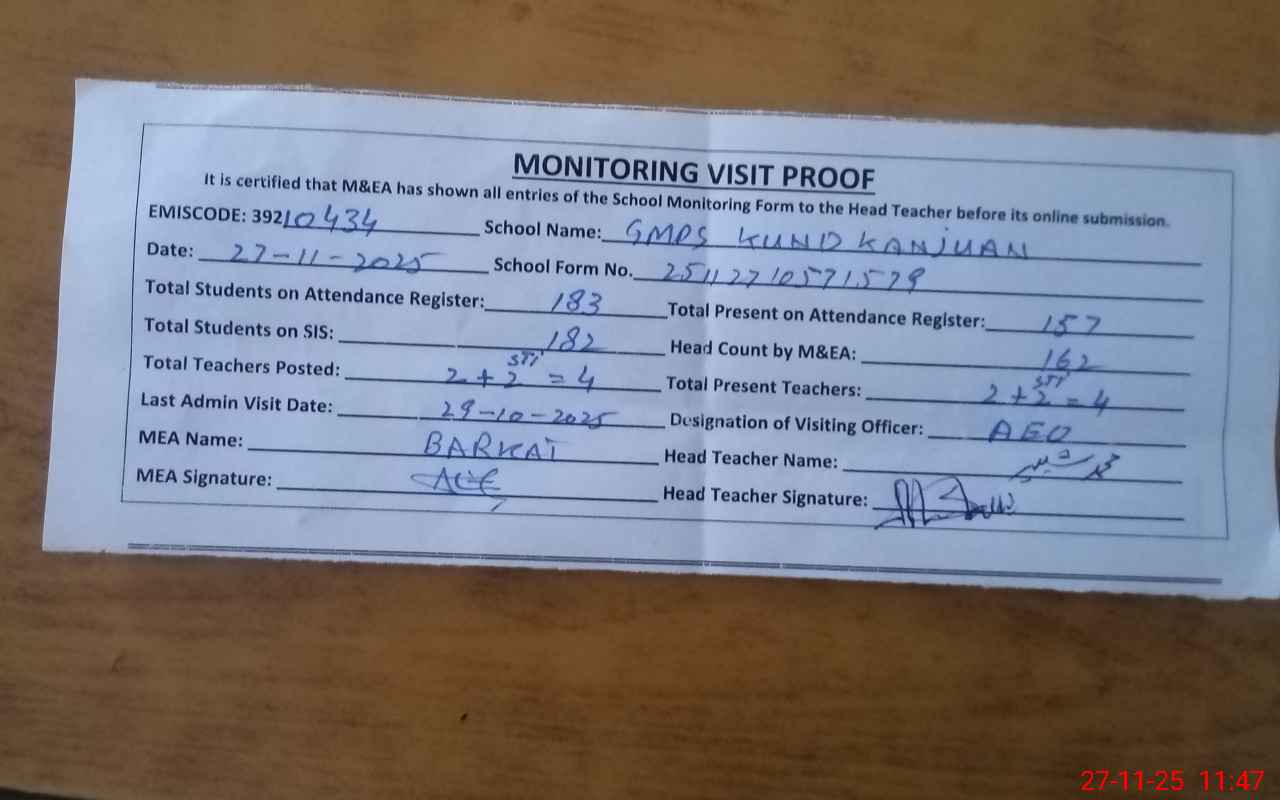 | EMIS Code: 39210434 | Name of School: GMPS KUND KANJUAN | |||